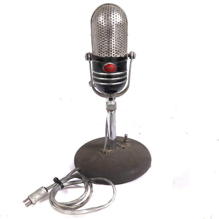 With its polished chrome shell and compact capsule design, the Argonne AR‑57 is a mid-century favorite among collectors and modders alike. Originally built with a crystal element, it’s often converted to dynamic for modern use—but this one remains in vintage working condition. Whether you’re chasing that retro-radio aesthetic or need a conversation piece for your mic shelf, the AR‑57 delivers the look and tone of a bygone broadcast era. No stand included… $175.00
