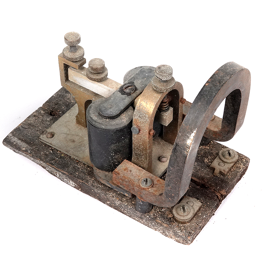 The antique Western Electric Polarized 7A Telegraph Sounder with 1000 ohms resistance was manufactured in the United States. This collectible piece of railroadiana hardware is a rare find for enthusiasts of transportation memorabilia. Made with quality craftsmanship by Western Electric, this telegraph sounder represents a piece of American industrial history and is a valuable addition to any collection. This sounder is used in Duplex and Quadroplex land line telegraphy. The permanent magnet biases the magnetic flux of the electromagnet so that the sounder will only respond to current of one polarity and not the other. That permitted a single telegraph line to carry 2 signals at the same time thus doubling the value of that line… $25